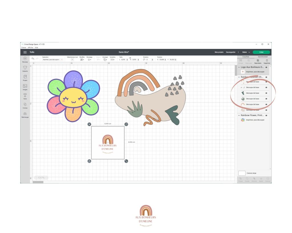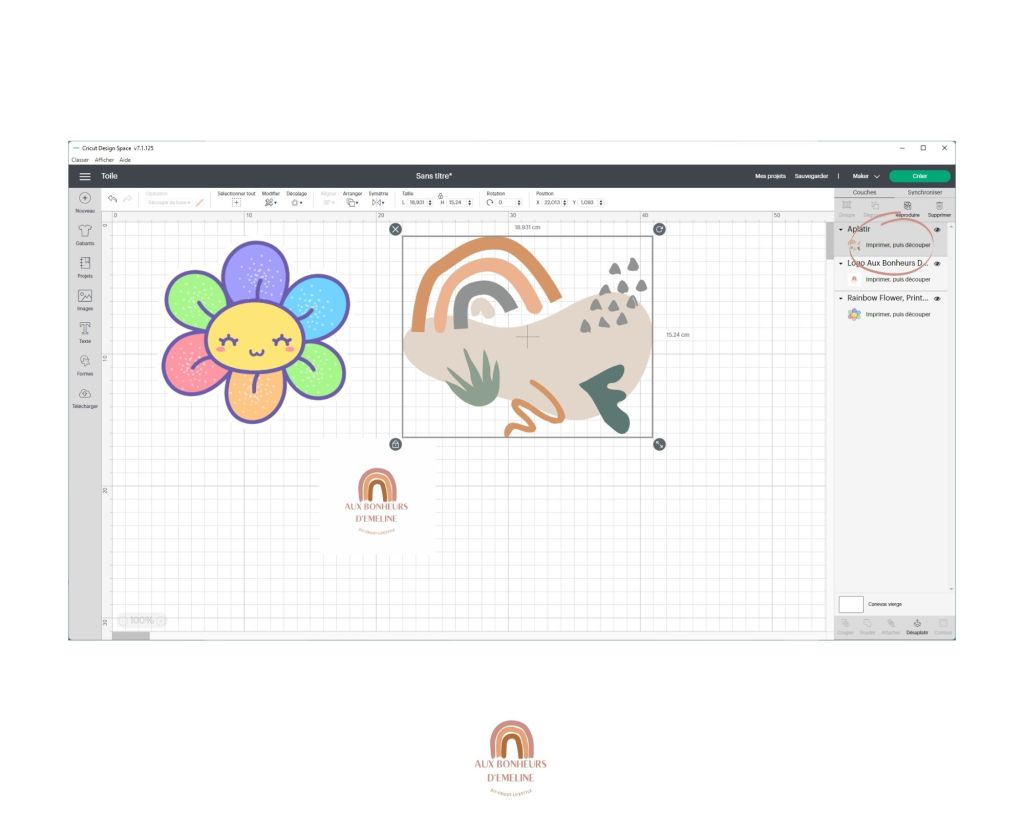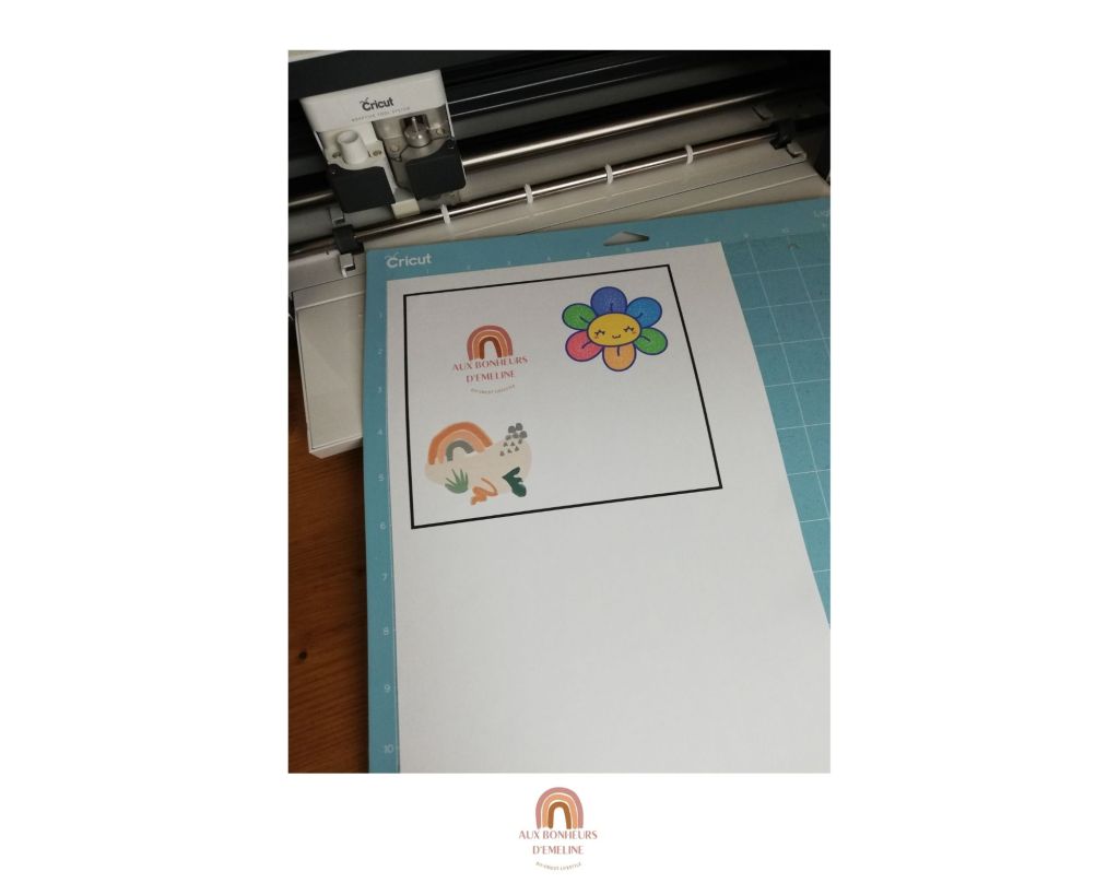 • Vous remarquerez qu’un rectangle noir est apparu autour de vos images. Pas de panique c’est normal c’est ce qui va permettre à votre Cricut de détecter la zone de découpe après impression.