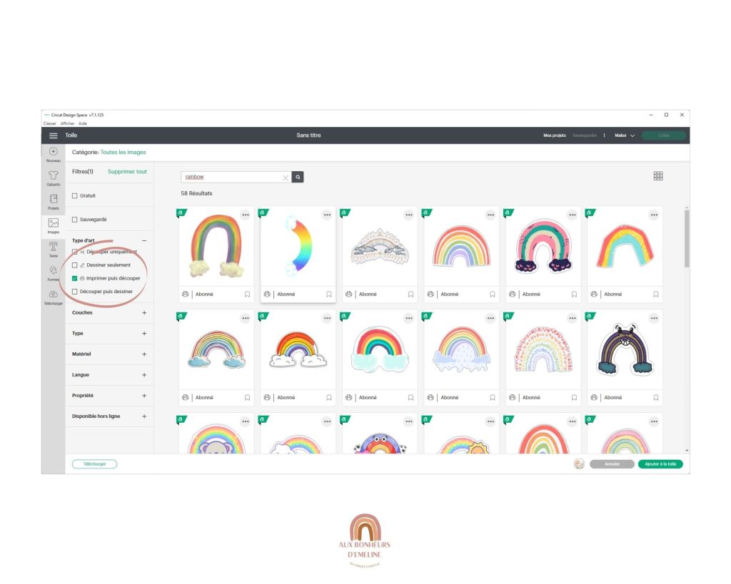 • Vos tapis de découpe apparaissent alors, en mode « impression puis découpe »