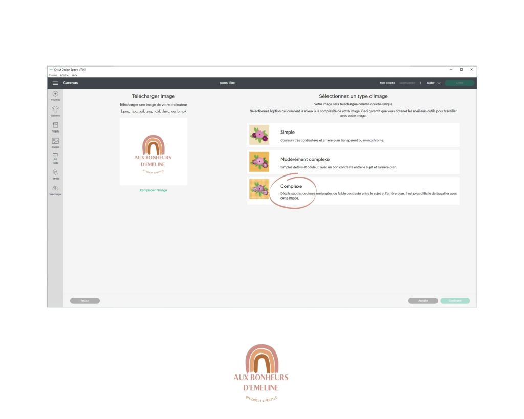 Une fois votre image sélectionner, il va falloir la « nettoyer » en utilisant les différents outils du Design Space.
