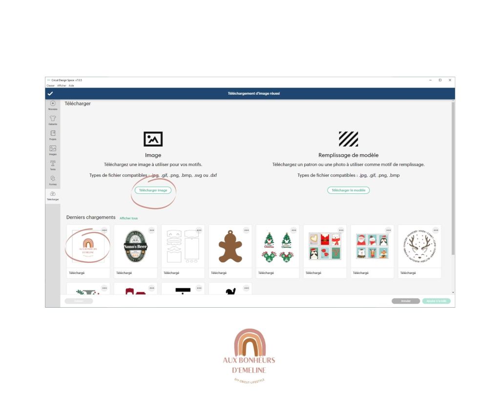 Une fois la conversion faite, il ne vous reste plus qu’à télécharger le nouveau fichier et à le télécharger sur le Design Space. L’image est prête à être utilisée!!!