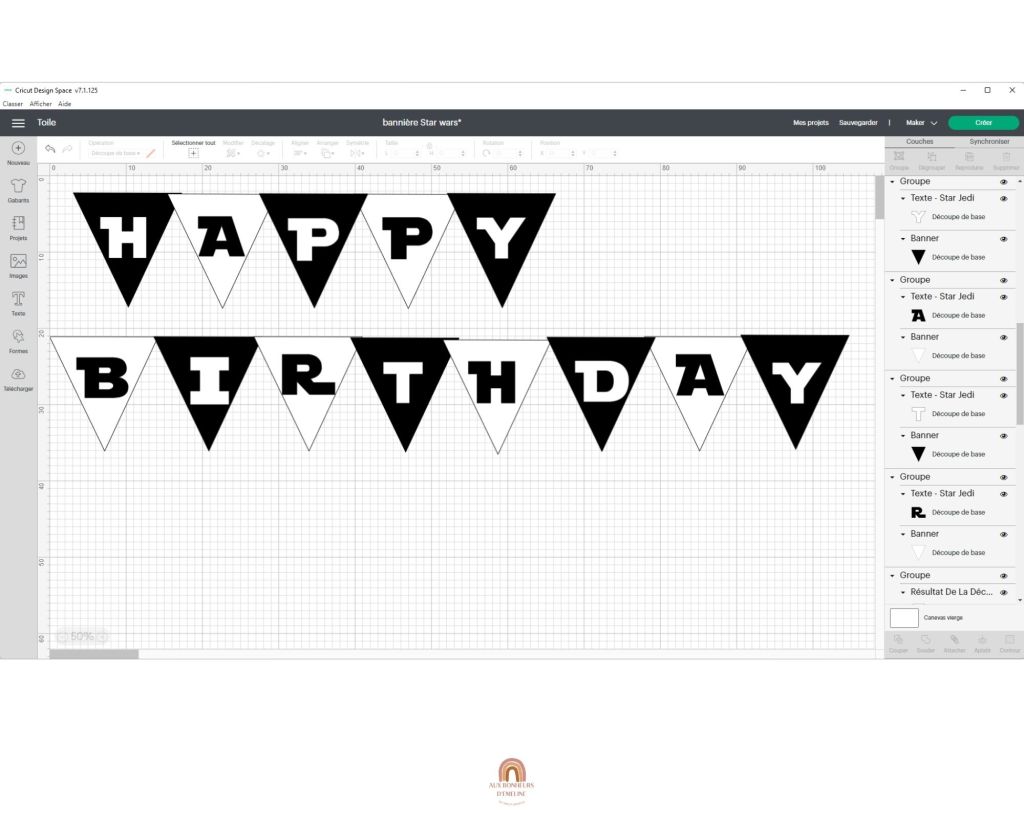 • Taper ensuite le texte « HAPPY BIRTHDAY » dans la police Star Jedi de hauteur 5.4 cm