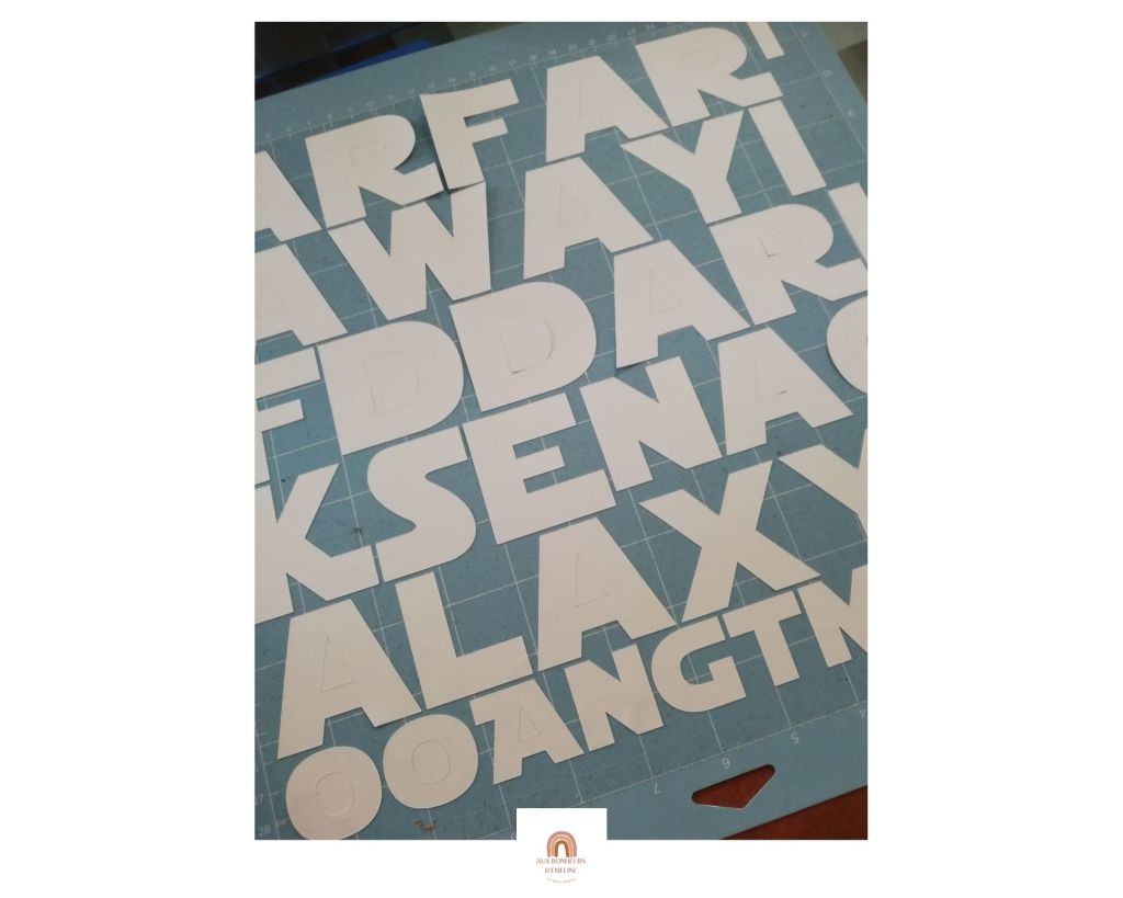 • Puis j’ai découpé les lettres grâce à la Cricut Maker en utilisant la police d’écriture « Star Jedi » que j’ai ensuite collées sur les boîtes de lait.